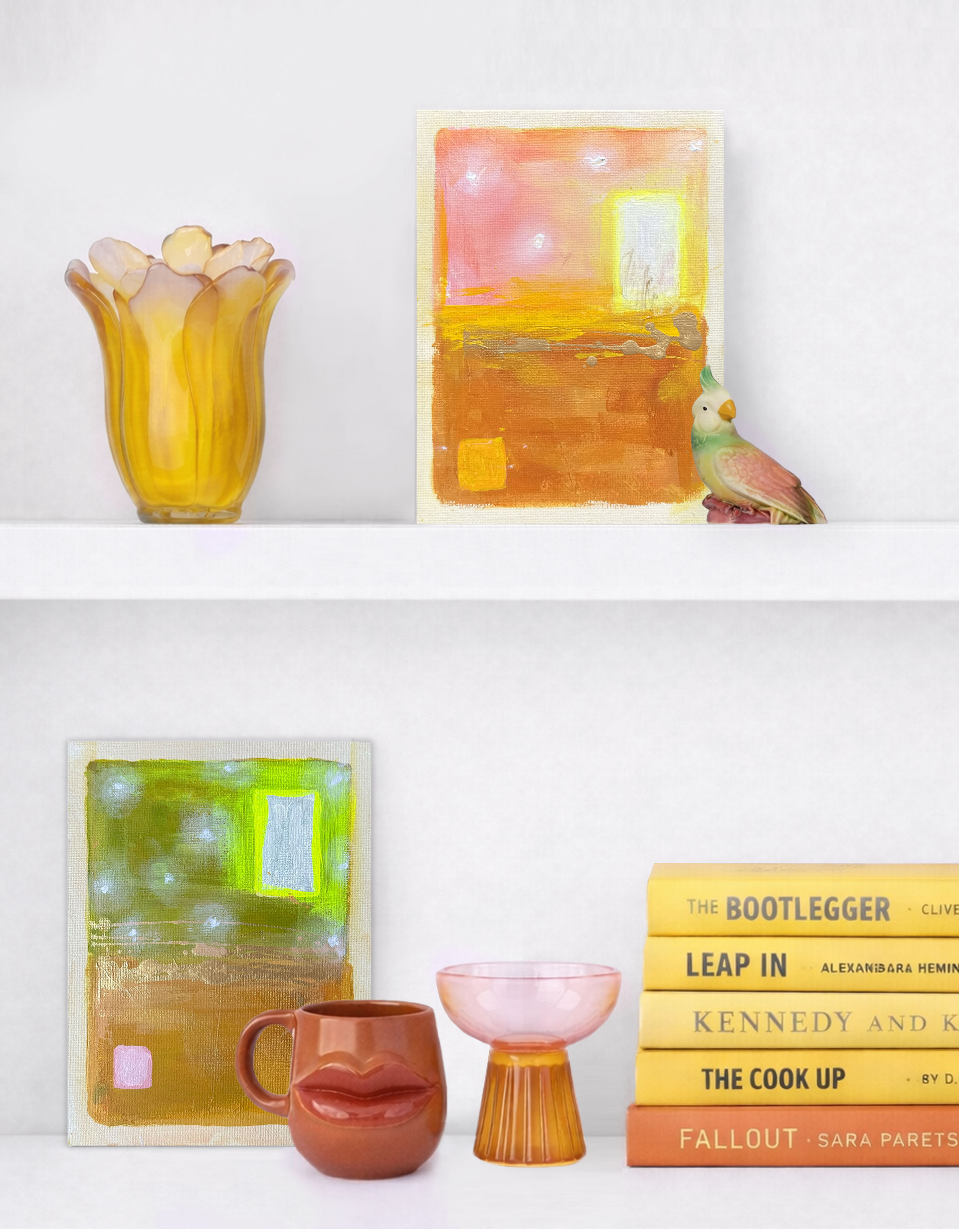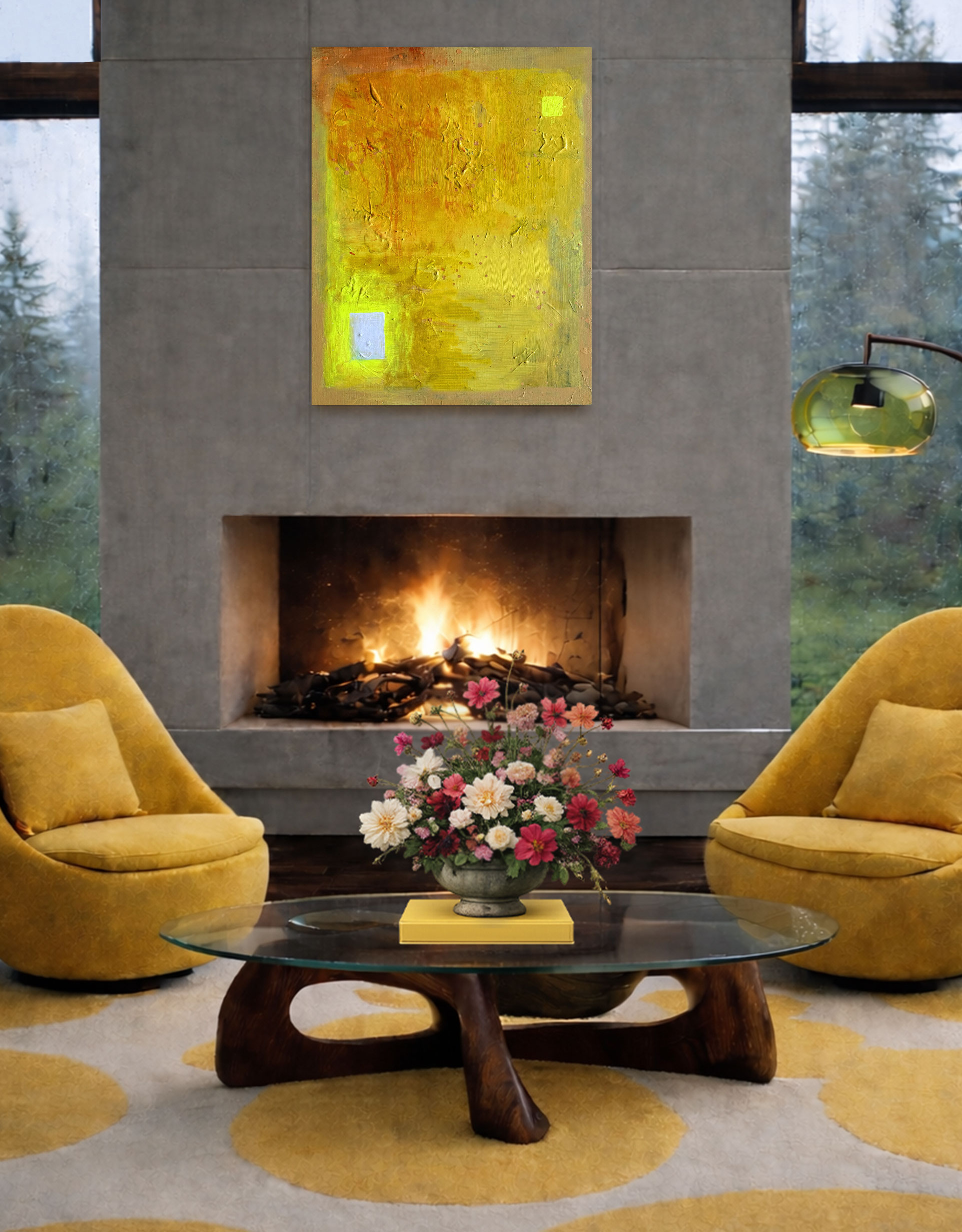 Artworks shown in environmental mockups are AI-generated and may not perfectly represent final size, color, or composition. Additionally, digital photos may slightly vary in color or cropping from the original piece. Please reach out to schedule an in-person viewing if you have any questions.